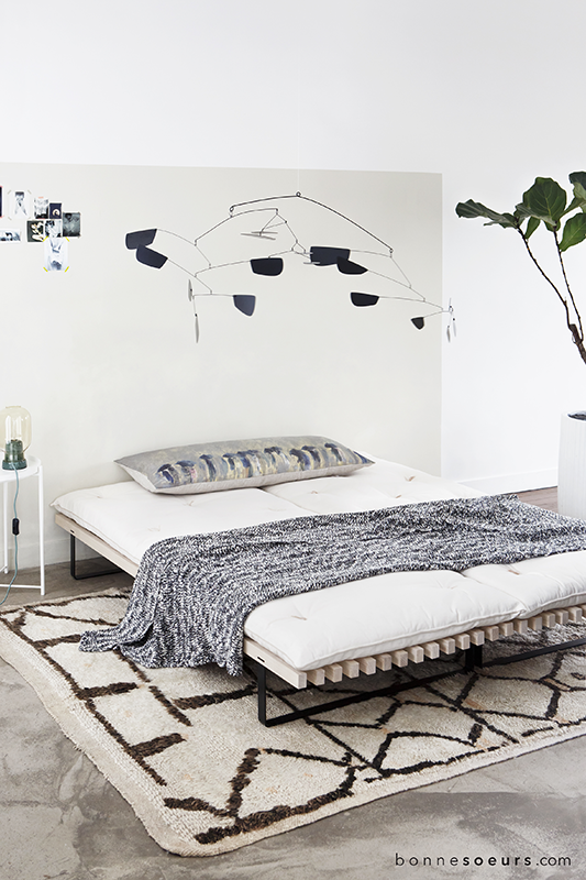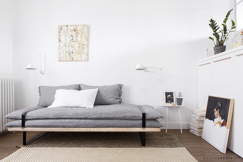 Mais c’est leur dernière création qui a retenu le plus notre attention… Les deux créatrices nous dévoilent leur version du daybed, qui devient ici multifonctions. Voici la « Dormeuse » ! Une banquette/lit design aux lignes pures et élégantes qui allie fonctionnalité et style ;)