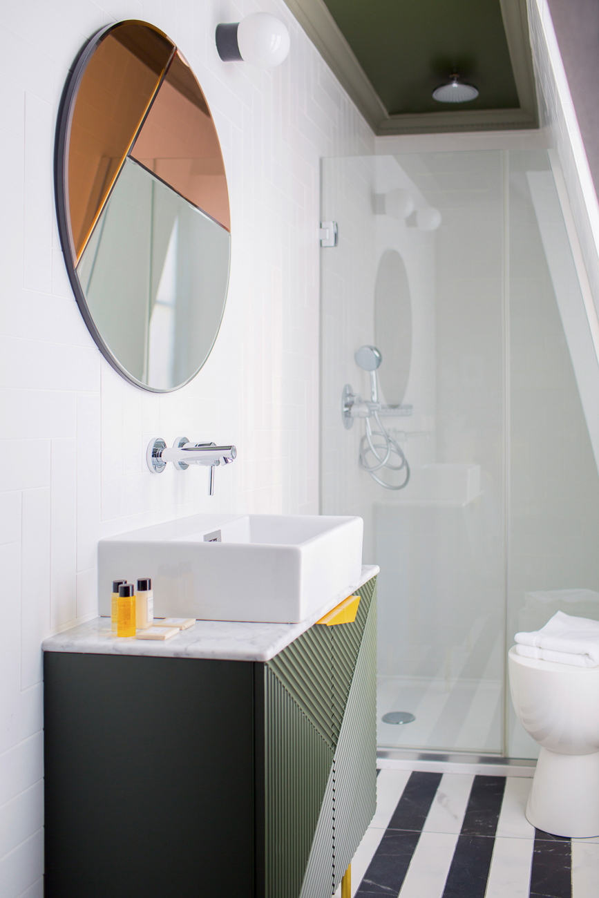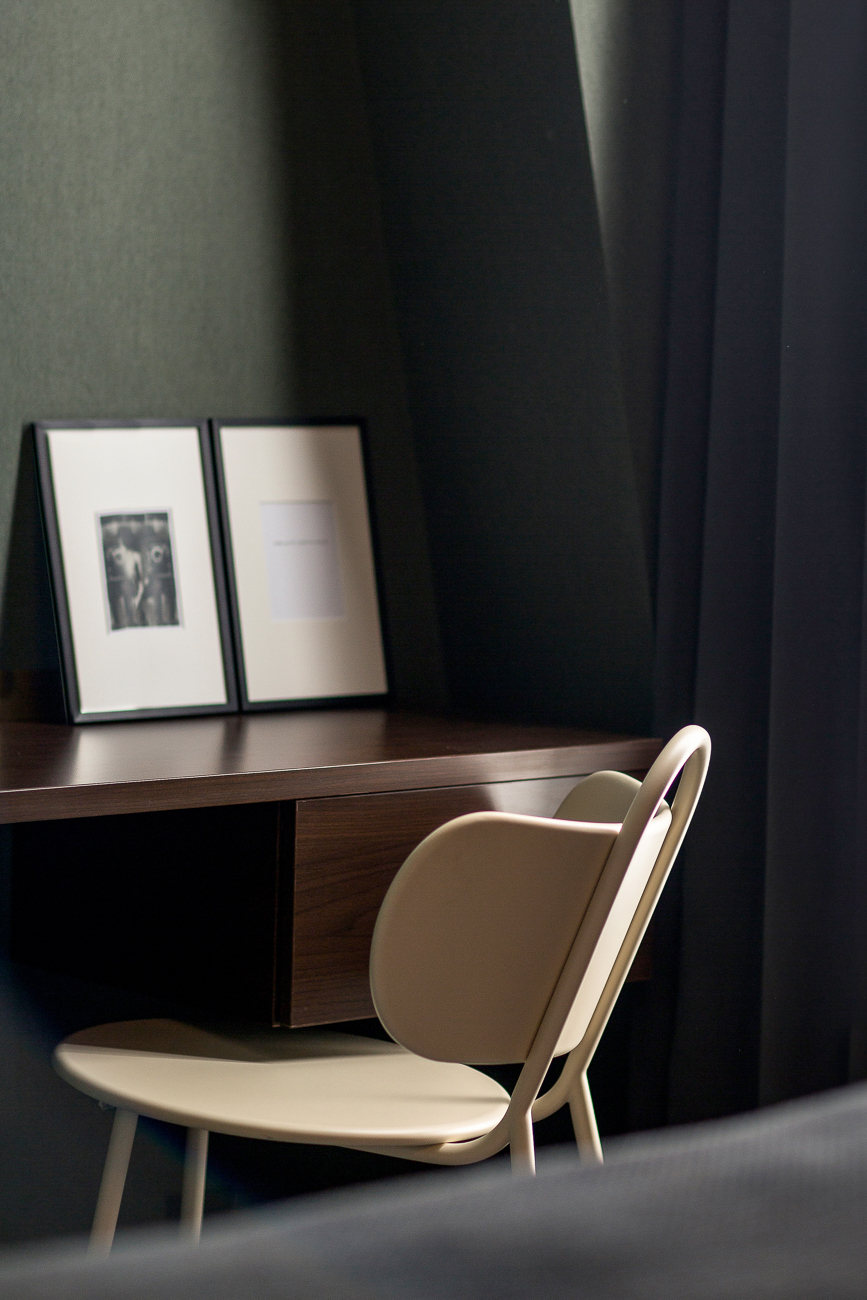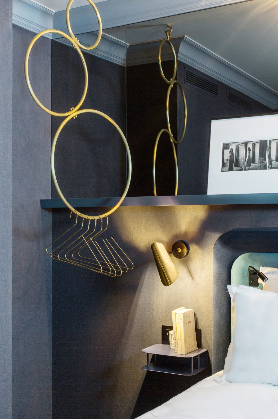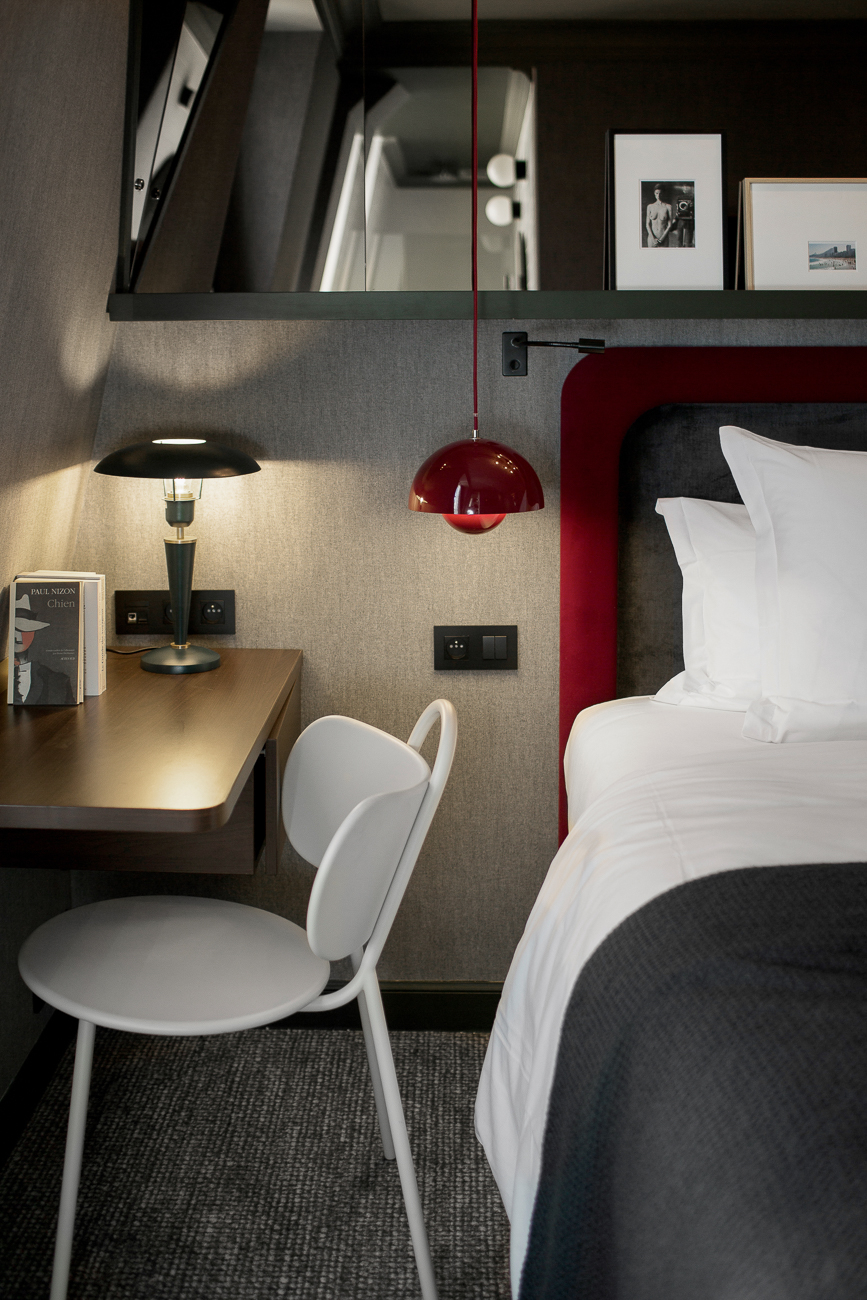 Chevets aériens, lampes à poser et suspensions asymétriques. Double tête de lit pour le coté douillet et couvertes de velours feutrés. Plaid côtelé et moquette patinée… Il ne me reste plus qu’a vivre l’expérience le temps d’une nuit d’isolement ahah