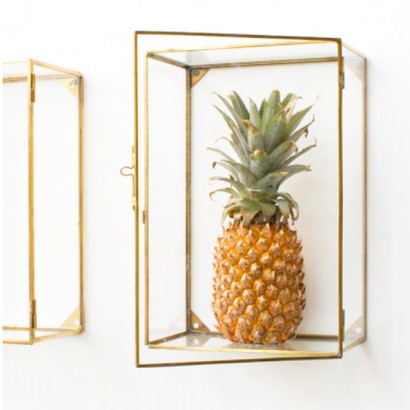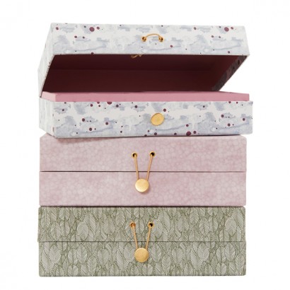 Etagère dorée – ComingB // Boîtes à bijoux – House Doctor // Calendrier perpétuel – House Doctor // Panier à pois – La cerise sur le gâteau // Vitrine murale – ComingB // Planche en marbre vert – Madame Stoltz