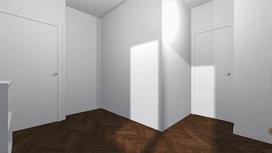 De plus, cette pièce bénéficie d’une salle de bain et d’un accès à la terrasse. De vrais plus mais aussi de vraies contraintes supplémentaires car la circulation et l’accès doivent être fluides. Les portes, ne vont pas me faciliter la tâche !