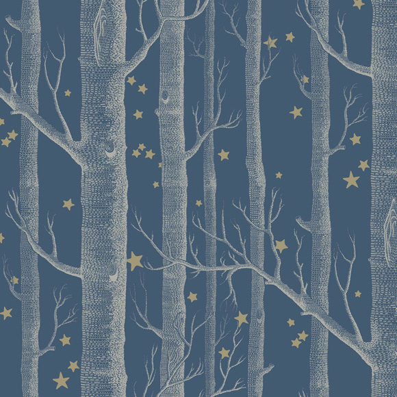 Enfin sur un pan de mur de la chambre, je choisis de poser le fameux papier peint Woods & Stars de chez Cole & Son, dans son coloris bleu nuit pour un esprit féerique qui s’associe au bleu du reste de la pièce.