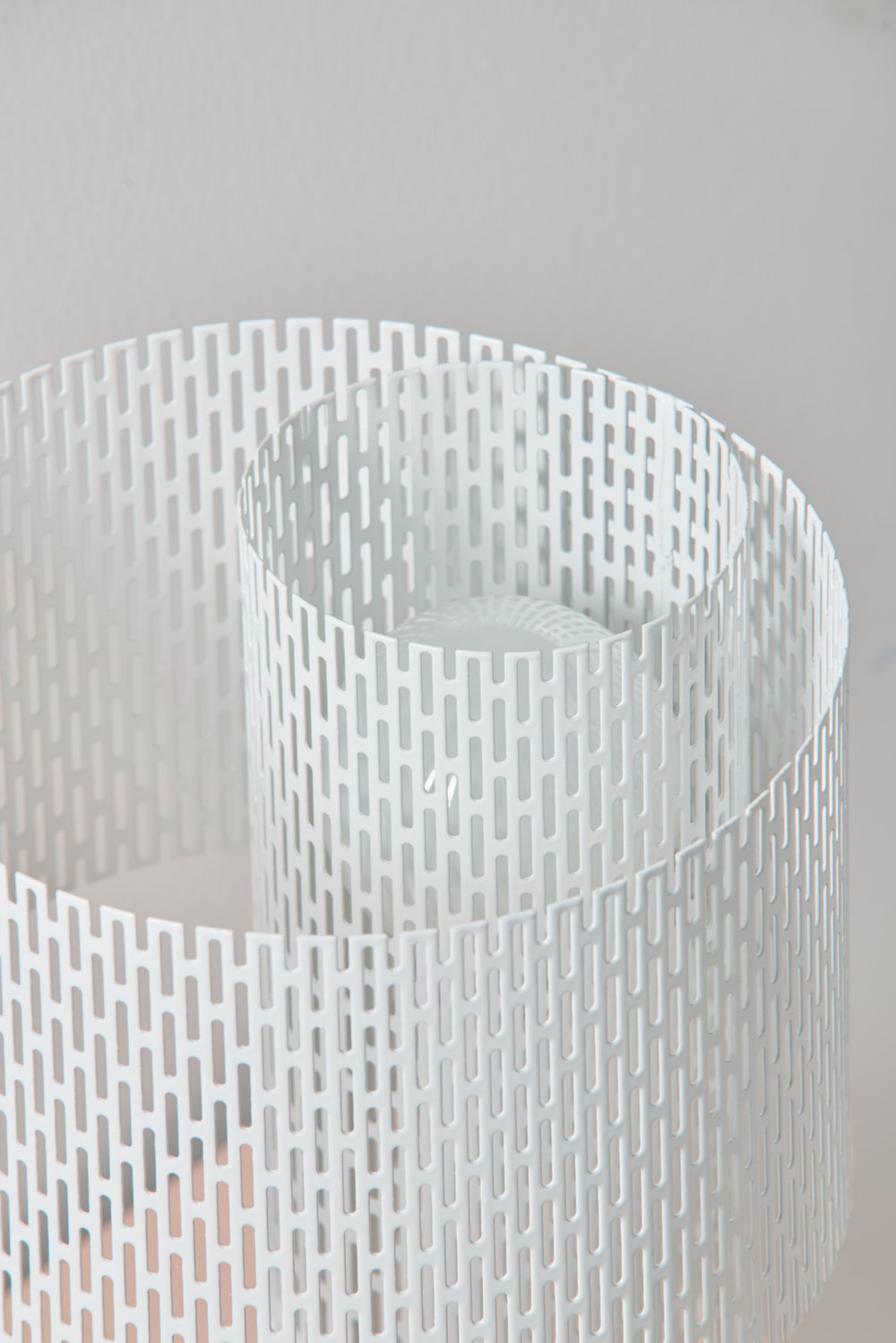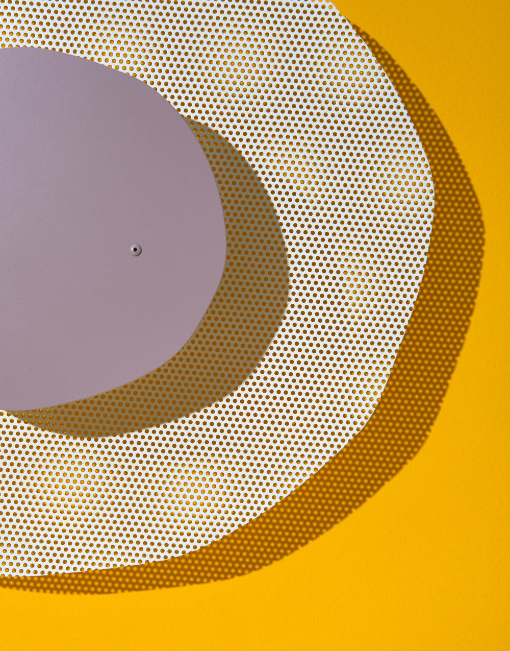 Ces créations en plaque de métal perforé sont le résultat d’essais expérimentaux audacieux. Fade out cactus est un cactus en 3 dimensions en métal vert menthe. Superpose, une suspension et une lampe de table. Les couleurs vives associées au métal perforé dégagent une belle ambiance avec des reflets très différents selon l’angle de vue et offrent une perception différentes de l’objet, qui devient esthétique mais aussi ludique. On adore !