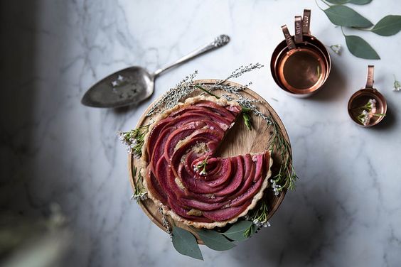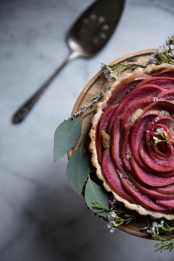 Voici la recette de la tarte aux pommes roses et Frangipane de Beth (Local milk)