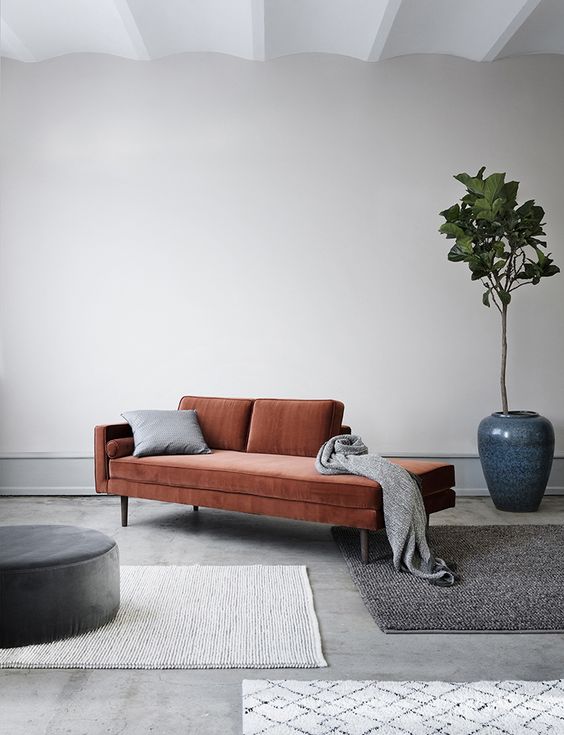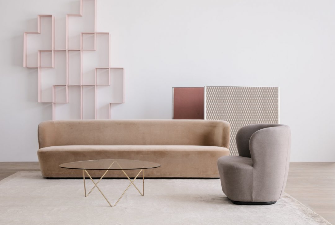 Une ambiance cosy et chic façon boudoir comme chez Gubi, Broste Copenhagen et Ferm Living, où le style art-déco se retrouve dans de moelleux et confortables fauteuils en velours dont le galbe enveloppant est une invitation à la paresse.