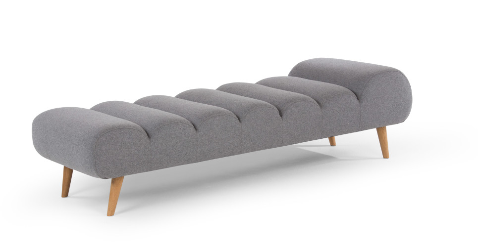 Banquette Caterpillar – Made // Méridienne Eyre – Habitat // Banc Straight – Bloomingville // Banc Addition – Royal Design // Dormeuse en feutre – Menu