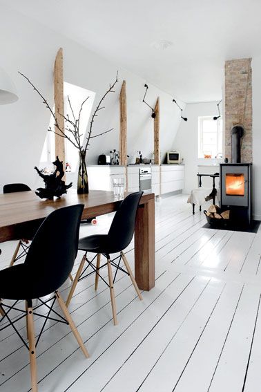 Des chaises blanches ou noir pour une table en bois, des chaises en bois ou colorées pour une table blanche.