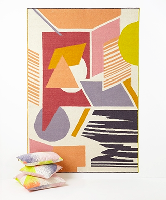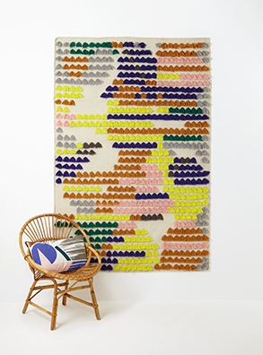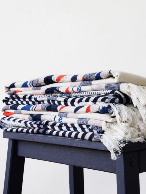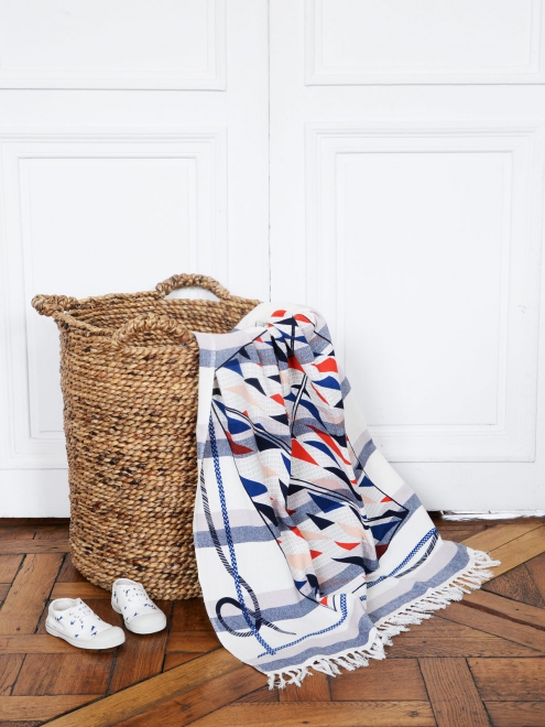 Et c’est l’année dernière qu’Elsa décide d’élargir son univers à la décoration d’intérieur et la papeterie, toujours avec cette touche si particulière. Les motifs graphiques et les aplats colorés se transposent sur des tapis, des coussins, des foutas mais aussi des cartes postales ou encore des carnets de notes.