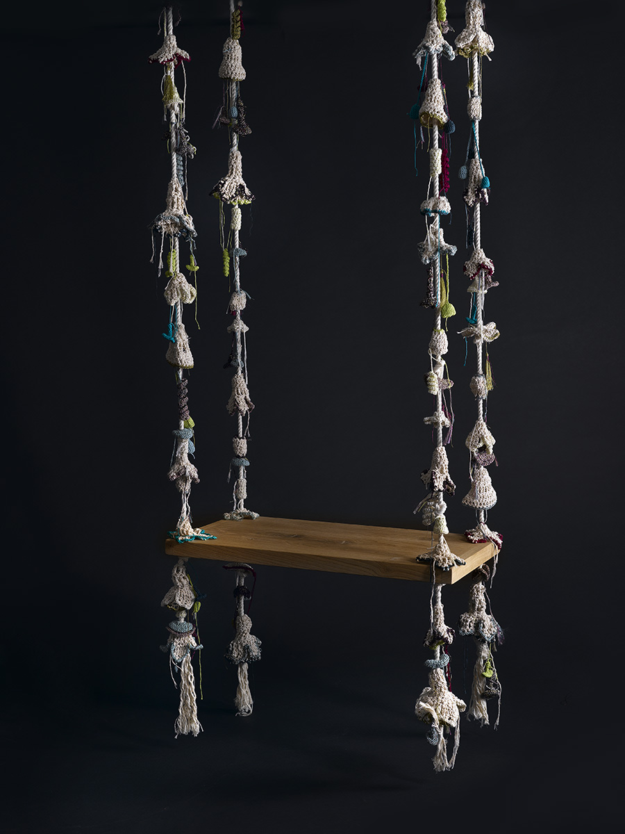 Crush absolu pour à peu près tous les produits Iota ! Cette marque incroyable, aux valeurs humaines, environnementales et éthiques basée à Tel-Aviv, s’appuie sur un réseau de femmes en difficulté sur le marché du travail. L’idée : les initier au tricot, au crochet et autres techniques de couture traditionnelles et les rémunérer avec équité pour la confection des collections Iota. On y trouve des tapis, des cousins, des poufs contemporains et surtout… Cette balançoire !