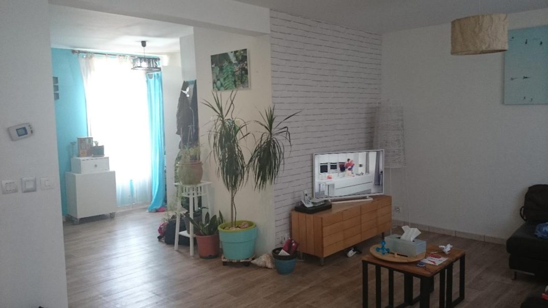 Coté salon, le meuble multifonctions devient meuble tv avec rangements et permet de placer le canapé dos au mur et tourné vers le reste de la pièce. Bien plus convivial et chaleureux ;)