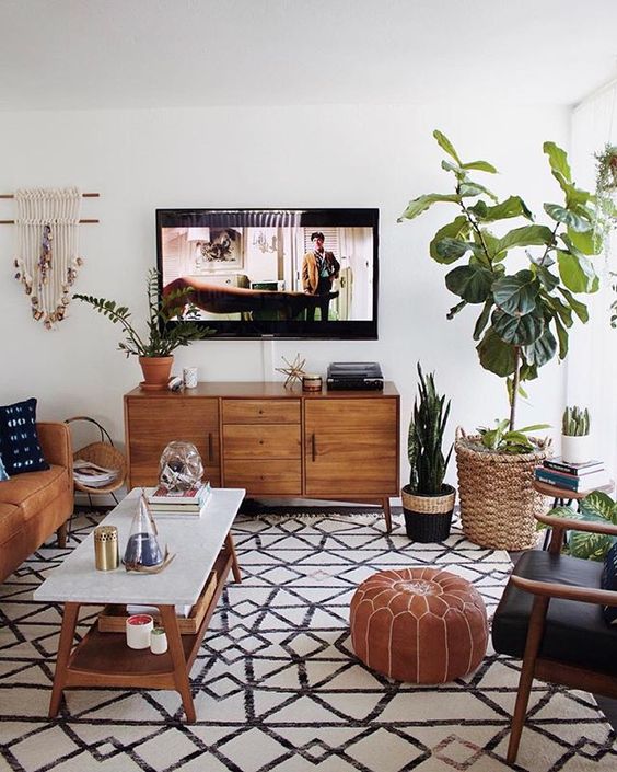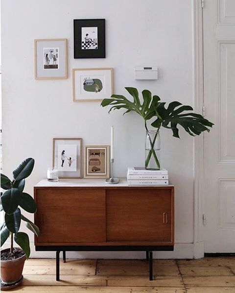 Un des alliés de l’enfilade scandinave c’est le vert. Le style urban jungle, lui sied donc à merveille. Jouez l’accumulation et n’hésitez pas à jouez avec les formes, les couleurs et même avec la hauteur lors de votre composition. Que les plantes soient posées sur votre enfilade, au sol à ses côtés ou suspendu au dessus, le résultat sera du plus bel effet.