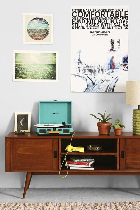Elle est aussi l’endroit idéal pour y déposer photos et cadres de façon nonchalante mais tellement chic. Vous pouvez aussi opter pour un mur de cadre, qu’elle viendrais sublimer par son look rétro. L’accumulation lui va si bien, que vous n’aurez même pas besoin de vous poser de questions !