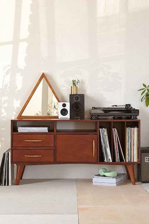 Qui dis vintage, dis le grand retour du tourne disque et des vinyles de notre jeunesse ou de vos parents selon… Voilà voilà ! L’enfilade fait la part belle aux meubles normalement destinés a cette fonction et relève haut la main le défi.
