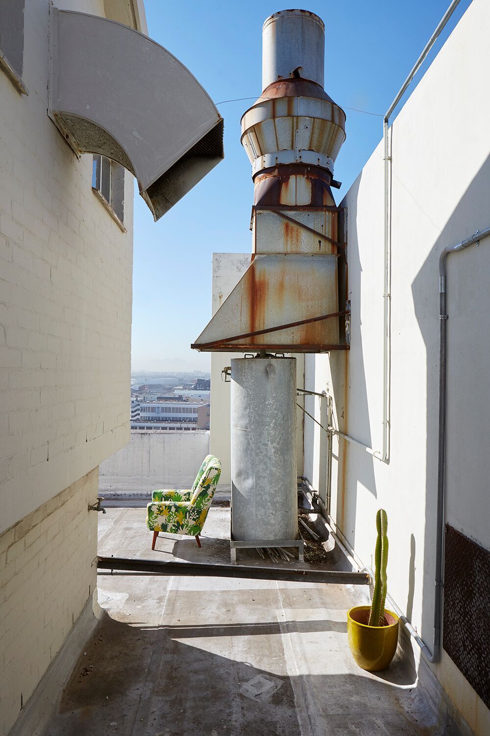 Pour ROOF GARDEN, Heather a tout simplement évoqué le graphisme crée par les ombres portées de ses plantes sur le sol de sa terrasse.