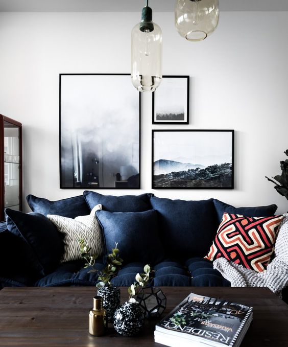 Pour un effet structuré, on opte pour le mur de cadres dont on crée la composition totalement libre. Avec cette solution, les cadres ont leur importance ! On les choisit d’une même couleur et de même épaisseur afin de créer une harmonie, ou bien pour un esprit plus bohème, on associe les cadres de façon dépareillée en variant les formes, les matériaux, les tailles et les couleurs. Et pour dynamiser un peu la composition, on mixe nos propres photos avec de jolies illustrations ou bien même avec nos plus belles cartes postales !