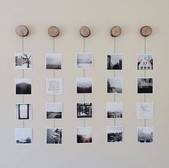 Pour les plus « bricoleurs », autre option ! On se retrousse les manches et on fait preuve d’un peu d’imagination en créant de petites structures porte-photos. Une simple branche de bois et un peu de corde peuvent suffire.