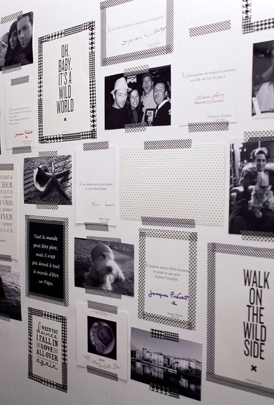 Et pour chez moi, les photos du couloir sont en noir et blanc simplement accrochées avec un masking tape noir, c’est simple et efficace !