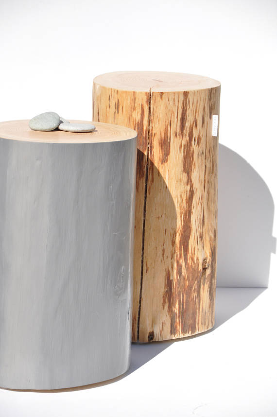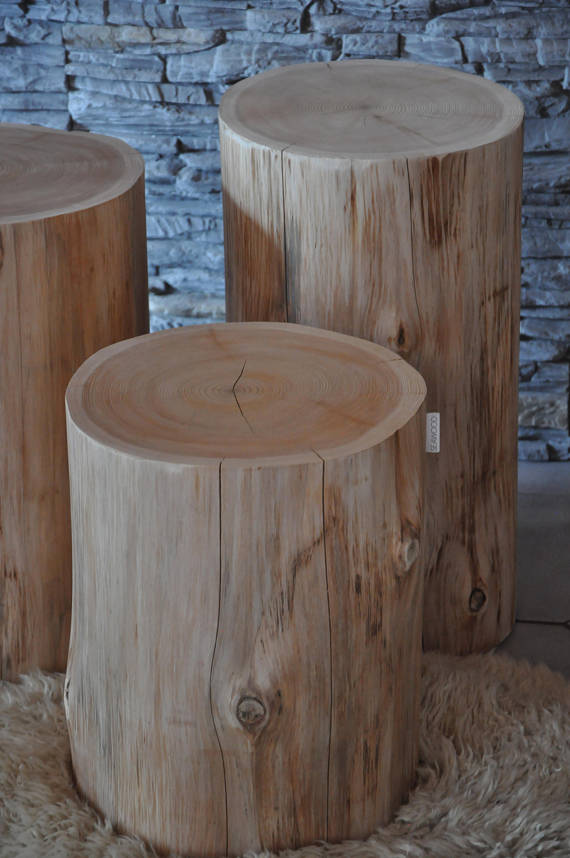 Elle a imaginé 3 modèles : Emma, Norma et Élégant. Ils existent tous en 3 hauteurs différentes, ce qui permet de créer des volumes et des compositions uniques. Chaque rondin de bois dispose de caractéristiques qui lui sont propres telles que fissures, tâches, nœuds ou naissances de branches. Ces aspérités naturelles mises en valeur lors du ponçage confèrent à chaque meuble un look bien distinct et en font des pièces uniques. Par ailleurs, tous les modèles sont disponibles en 3 finitions : naturel, blanc ou noir, grand succès de 2017 avec la tendance ethnique. La créatrice réalise aussi des couleurs spécifiques pour des demandes personnalisées.