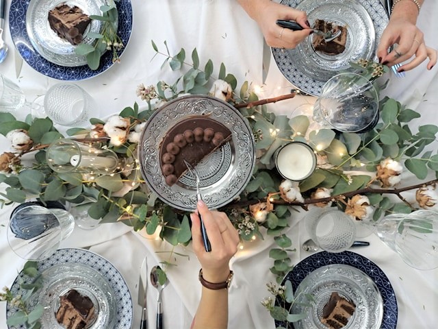 Pour assurer le côté élégant du dîner, la nappe blanche est de rigueur. On joue la simplicité mais la nappe brodée ou damassée n’est pas à exclure.