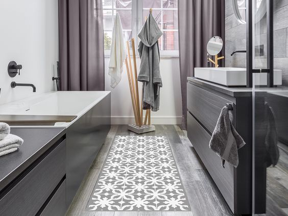 Naturellement on a tendance à oublier les pièces d’eau. Bah oui question hygiène, c’est vraiment la cata. Mais ça c’était sans compter sur les magnifiques tapis en vinyle, qui remplissent (quasi) tous les critères de la version original. A savoir, délimiter de l’espace, apporter un peu de chaleur, dynamiser la déco et l’aspect anti-dérapant qui est également très important. Il va de soi que le tapis vinyle peut allègrement s’inviter dans toutes les pièces de la maison. Chic, graphique et très facile à entretenir, il a vraiment la côte !