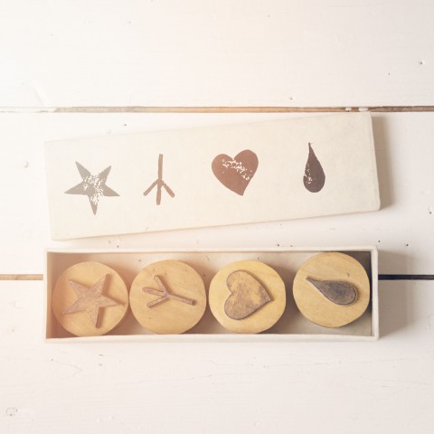 Set de 4 tampons : goutte de pluie/cœur/étoile/empreinte d’oiseau – 39.95€